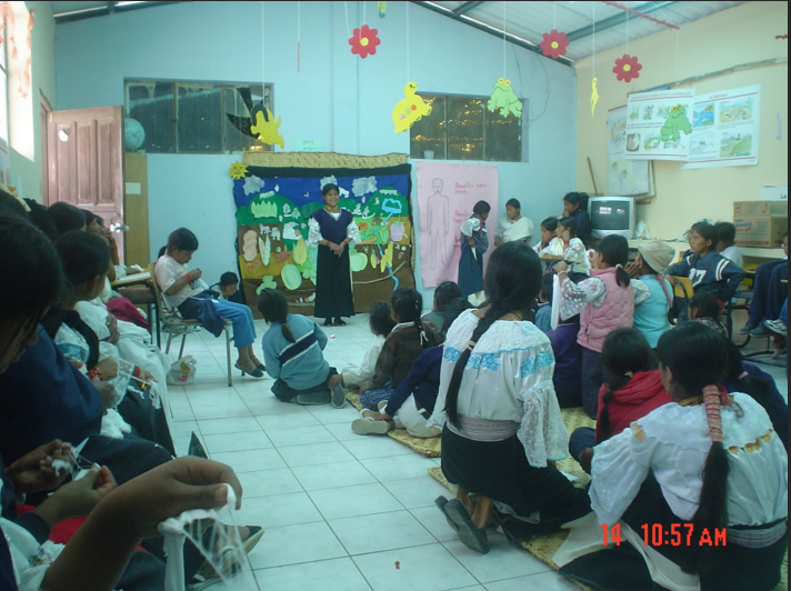 Fortalecer el rol de las mujeres como guardianas de la cultura e identidad, la revitalización de la lengua Kichwa y las practicas culturales. Fomentar la transmisión de los saberes e impulsar un modelo educativo propio de las comunidades, centrado en la esencia de la Pachavivencia.