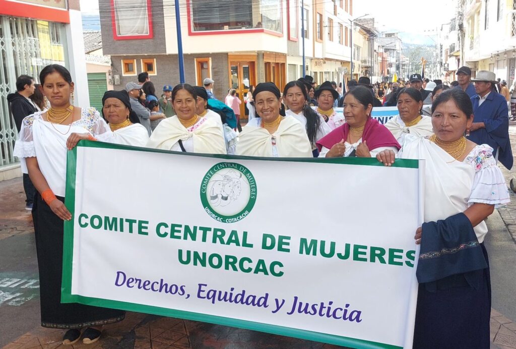 El Comité Central de Mujeres Unorcac es la voz, el sentir y accionar de las Mujeres dentro de la Unión de Organizaciones Campesinas e Indígenas de Cotacachi – Unorcac, organización de segundo grado que promueve la reivindicación de las comunidades indígenas que históricamente han vivido racismo y discriminación estructural y sistémica. Además de la marginalización y ausencia estatal en respuesta a las necesidades de la ruralidad y territorialidad vital (infraestructura, servicios básicos, salud, educación, vivienda y vialidad).